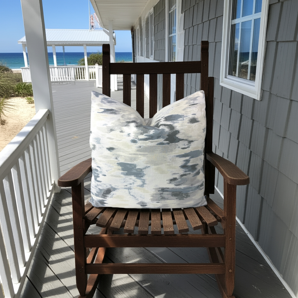 Cloudy, with a chance of rain. The abstract essence of soft clouds in white, ivory, blue and gray create a spa-like sense of calm. A perfect accent for living room, bedroom and beach house.