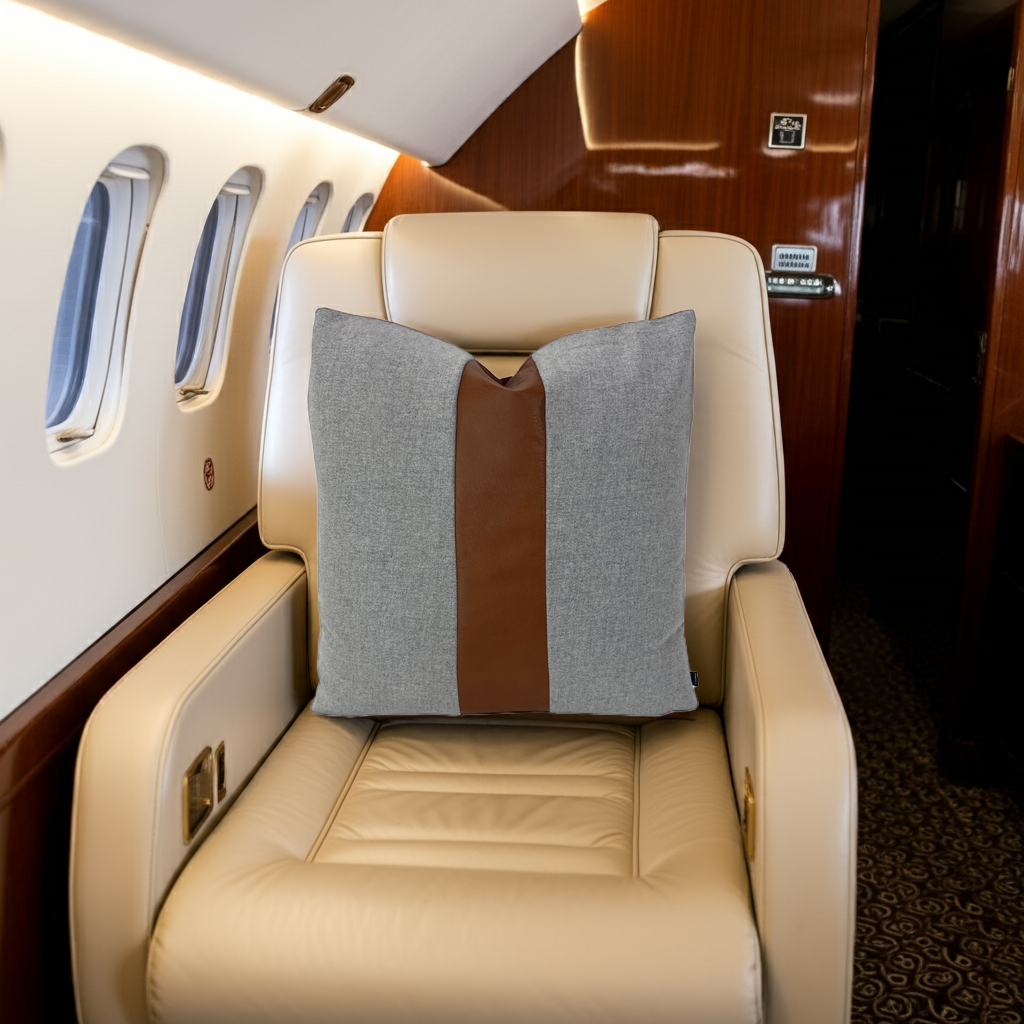Gray Flannel Throw Pillows with Leather Racing Stripe