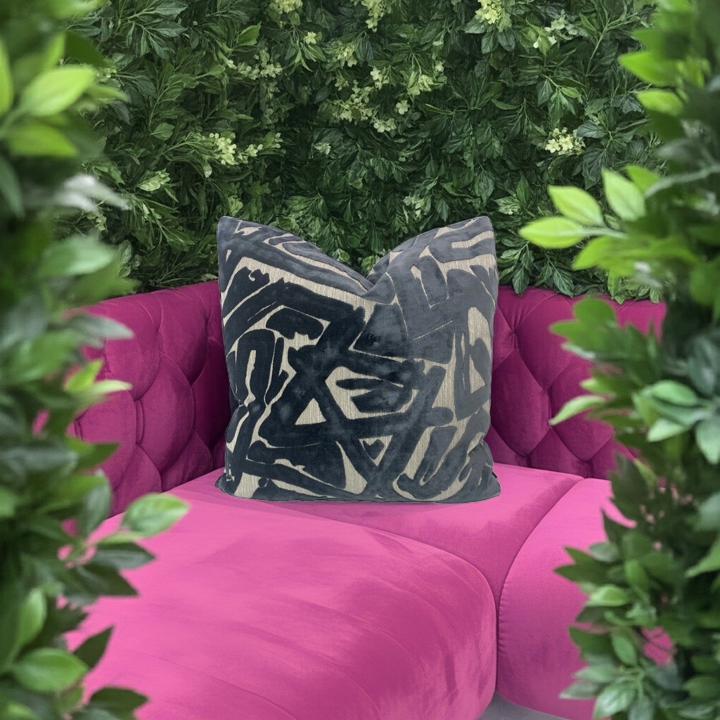 This abstract geometric pattern by S.Harris features mirrored velvet with acrylic backing. Perfect accents to complement any style of decor.